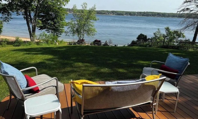 Remodeled Lake House Featuring Sauna, Sleeps 12 is located in Wolf Lake. Remodeled Lake House Featuring Sauna, Sleeps 12 provides accommodation, featuring View, Bedding/Linens, Wellness Facilities, among other amenities. This House features View, Bedding/Linens, Wellness Facilities, to make your stay a comfortable one.