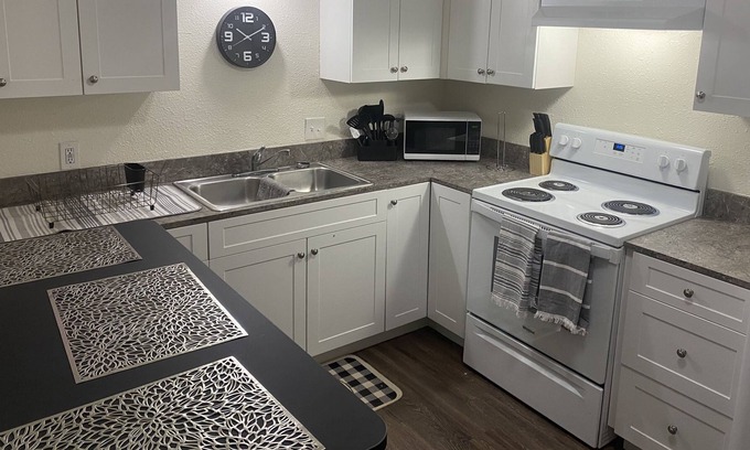 This newly remodeled apartment is now available. Located a few blocks from Eastern New Mexico University. The apartment features a spacious decked out kitchen with all amenities, a cozy living room, with a 43” television and 2 bedrooms with queen beds. There is a washer and dryer inside along with high speed wifi. A Ring doorbell camera is installed on the front door.