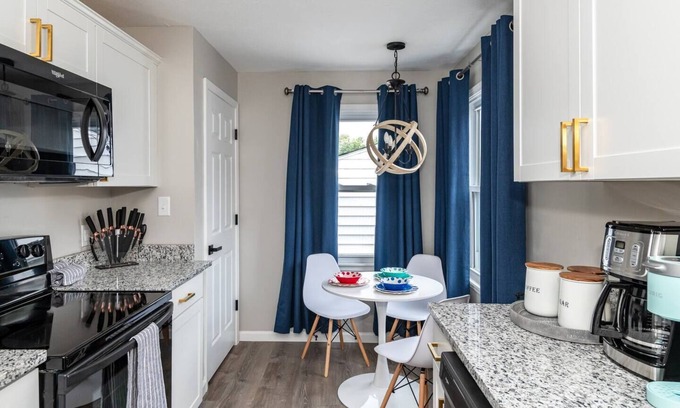 This newly renovated comfortable 2 bedroom 1 bath bungalow in a quiet, well established residential neighborhood is 5 min to WPAFB and 7 min to UD and downtown Dayton. Enjoy the king size bedroom, second bedroom with two full size beds, brand new kitchen and bathroom, and relaxing patio in the backyard. Fully equipped kitchen, and Keurig and Cuisinart coffee! This centrally-located home sleeps up to six and is the perfect location for your family or co-workers to enjoy your stay in Dayton.