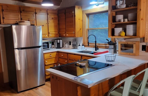 You may not even want to leave the 12-acre property with trails, outdoor games, hammocks, a stream, a fire pit, indoor games, puzzles, crafts, books, DVDs, internet TV, WIFI, and more! Plus, an updated kitchen with brand new appliances, quartz countertops, and country-chic dishware and utensils. If you like to cook, we've got what you need, if you don't, food is just a phone call or short drive away!