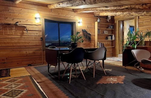Paonia Nest is perfectly placed at the very end of the road backing up to endless hiking trail accessible BLM wilderness, yet only minutes to the three vineyards located down the street as well as the quaint town of Paonia. The impeccably designed interior of this passive solar home, boasts eclectic and comfortable rustic modern living, with epic edge-of-the-world views from every vantage point inside the house and around the property. Staying here is definitely an unforgettable experience.