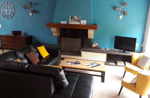 A large equipped living room (TV, wifi), equipped kitchen area (dishwasher, oven, microwave ...). Two bedrooms: 1 double with bathroom and 1 with 3 single beds.