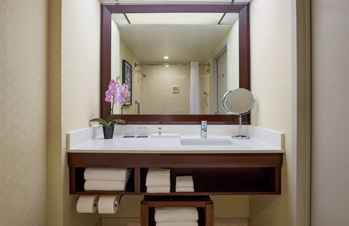 Your experience here will be enhanced by exceptional amenities designed to cater to every need. Indulge your guests with exquisite cuisine at two on-site restaurants, or unwind after the festivities at the bar/lounge. The hotel features an outdoor pool, a state-of-the-art 24-hour fitness center, and a conference center suitable for various events. Each of the 502 accommodations is thoughtfully equipped, boasting pillowtop beds, premium bedding, and modern conveniences including complimentary toiletries and hair dryers, ensuring comfort throughout your stay.