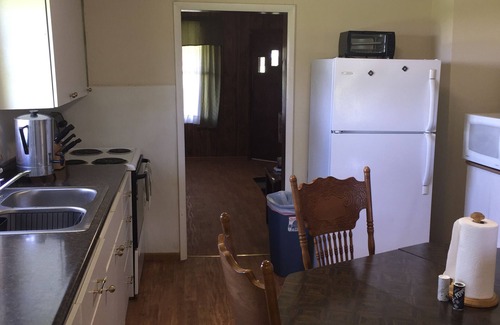 Very quiet and quaint cabin/house only minutes from the lake. It is an older place with a few uneven floors that adds to the charm. Like going to Grandpa's old place. Has new paint, flooring, cabinets,windows etc. Located in the town of Nason. 250 population. Sits in the peninsula of Rend Lake. Close access to the lake and public boat access and the golf club. There is a family style restaurant/convenience store/bait shop approx. 5 minutes away. The town of Mount Vernon is 15 minutes away and has many restaurants and stores including Lowes, Walmart, McDonalds, Applebees, ETC. The cabin has a Queen bed, bunk-bed, sleeper sofa and extra sofa. Sleeps 4 comfortably. Will sleep seven if you use the sleeper sofa and couch. Washer/dryer in unit. Dishes and appliances and full kitchen. Front porch with chairs. BBQ grill and a pavilion and picnic table. Has new Tommy Hilfiger pillows and bedding. Ariel television with 26 channels and WIFI