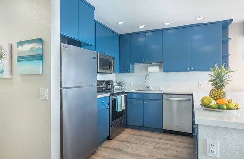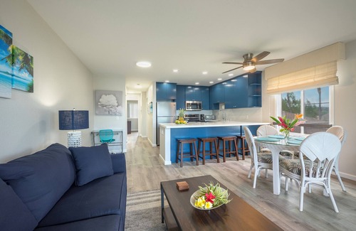 Our home has been completely remodeled as of 07/2020. Enjoy a modern home with Hawaiian flare as you melt the days away in paradise. The fully-equipped kitchen shines with quartz countertops and backsplash and new stainless steel appliances. Traveling with other guests? The dual-sink marble vanity in the bathroom is perfect for sharing.
