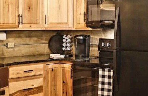 If sitting on the front porch in a rocking chair, watching the sunset is more your speed, this will be your haven. You may also decide to enjoy the outdoor entertaining area complete with a hot tub, gas grill, tables and chairs. Additionally, picnic tables are located near the fire pit where you can reminisce, tell stories & of course make s’mores (sticks provided).