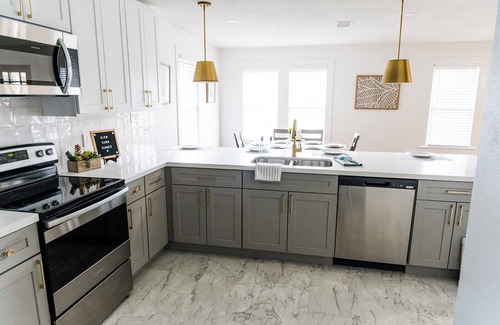 This beautifully renovated home features three spacious bedrooms and two full bathrooms, comfortably sleeping up to ten guests. The fully stocked kitchen invites you to whip up delightful meals, while the coffee bar provides the perfect pick-me-up for those busy wedding planning days. Enjoy the serene outdoor space, ideal for gathering with friends and family to celebrate love and togetherness. Additional amenities include a washer and dryer, ensuring that you have everything you need during your stay.