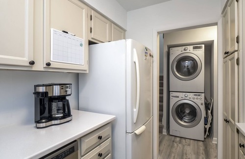 The Master bedroom has been renovated with ship lap ceilings and wood laminate flooring. You have lovely views of the 17th fairway of Ocean Winds from your large master bedroom windows. The master en-suite bath has been renovated with granite counters and tiled shower/tub. The guest bedroom is on the first floor and has a queen bed along with easy access to the updated hall bath. A new stacked washer/dryer sit next to the hall bath. Head up the stairs to the loft and the two twin beds. A half wall separates the open loft from the great room below.