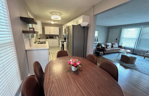 3 bed, 1.5 bath ranch-style home is centrally located (5 min to downtown Murfreesboro, 40 min to Nashville and easy access to the highway). Your cozy getaway awaits in Murfreesboro at this delightful house. With 3 bedrooms including a king bed, bunk bed(full, twin and trundle beds), and two twin beds. This home is perfect for families or groups of friends. Enjoy the convenience of fully equipped kitchen and all essentials provided. Our place will help you feel at home while you're traveling in Murfreesboro.