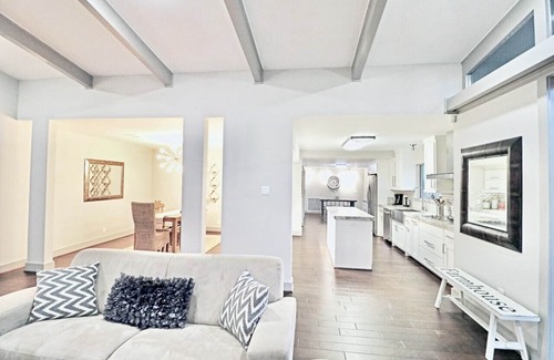 Welcome to The New Grove by Luxurway! This spacious, fully renovated and fully furnished private home is one story/level with 4 bedroom and 3 baths. Located near Bellaire, NRG and the Texas Medical Center (MD Anderson). There are grocery stores and restaurants within a 5 minute drive. Featuring a fully-equipped gourmet kitchen, washer/dryer, and fast WiFi. There's a fully fenced backyard area and free secure parking. Ask us for discounted monthly rates for extended stays.