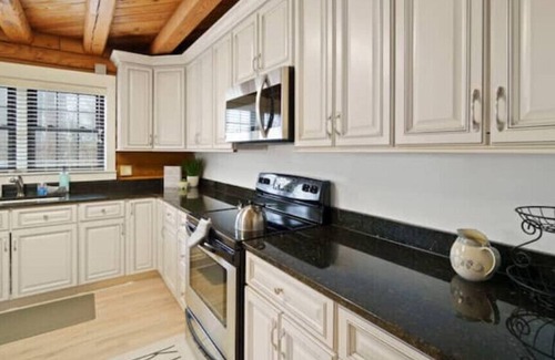 This 5BR/3BA will be yours to enjoy! The nicely furnished single-family log cabin can comfortably accommodate up to 12 guests. Read more about each space and included amenities below: