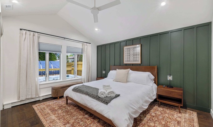 Our exquisitely renovated Southfield home features seven bedrooms and three full bathrooms—plenty of space for family, friends, or group getaways! Step into a bright open floor plan with a custom-designed kitchen, hardwood floors, and one-of-a-kind carpentry and tilework throughout. Two king beds (one in a luxurious master suite) and five queen beds ensure everyone has room to unwind in comfort. Head outside to your private backyard oasis: a secluded, wooded retreat with a limestone fire pit, grill, large lawn, and plenty of seating for cozy evenings under the stars. For wellness and fun, enjoy the fully heated and cooled gym—complete with a Smith rack, free weights, elliptical, bike, yoga gear, sauna, and even a cold plunge! With parking for 6+ cars plus a 2-car garage, this home is perfect for both entertaining and relaxing. Whether you’re gathering around the fire, cooking a meal in the chef’s kitchen, or rejuvenating in the spa-like gym, this is the ideal space for your next getaway.