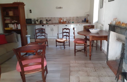 - a 30m2 living room with fully equipped kitchen, fireplace, television, table for 4 people and a sofa bed. A private garden runs alongside the living room.