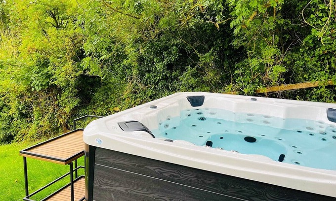 Under the trees to the front of the Lodge is the outdoor hot tub, almost entirely secluded from view to passersby.