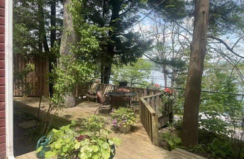 Redwood Cabin is a cozy 2+ bedroom, 2 bath Otsego lake cabin with 50' of private lakefront across the road. Recent renovations have elevated this home to a whole new level of comfort and enjoyment! This sweet, east-facing home is greeted with warm sunrises...a perfect way to enjoy your morning coffee or tea from one of the many decks both at the house and waterfront. Enjoy excellent fishing and swimming right from your own private dock, and swim to and from your own swim platform. (Please bring water shoes to protect from the sharp shells of zebra mussels).