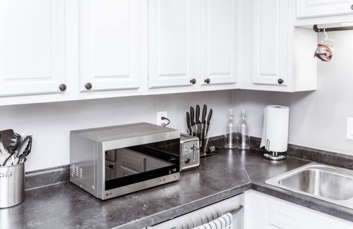 -- Kitchen includes Refrigerator/Freezer , stove/oven, microwave, toaster, pots/pans, cups, wine glasses, dishes, utensils, kitchen knives, coffee maker, and basic cooking supplies such as oil, salt, pepper, spices.