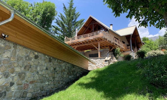 Located at 1,000 m above sea level, under the needles of Chabrières, our chalet with a total area of 160 m² is 5 km from the amenities and numerous activities in the village of Chorges, and only 10 minutes from the beaches of Lac de Serre-Poncon.