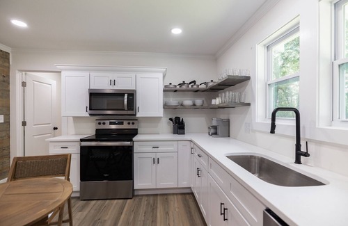 Spacious Accommodation: This charming cottage can comfortably sleep up to 6 guests, featuring a king bed in the owner’s suite, a queen sleeper sofa in the living room, and a trundle bed in the sunroom, allowing everyone to relax after wedding festivities.