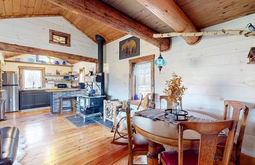 Renovated historic cabin with mountain views, lake access, & electric fireplace | Cabin in Jay