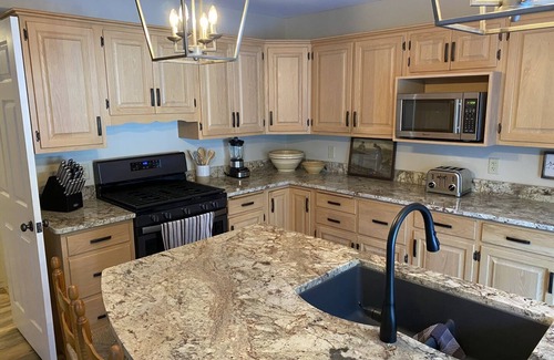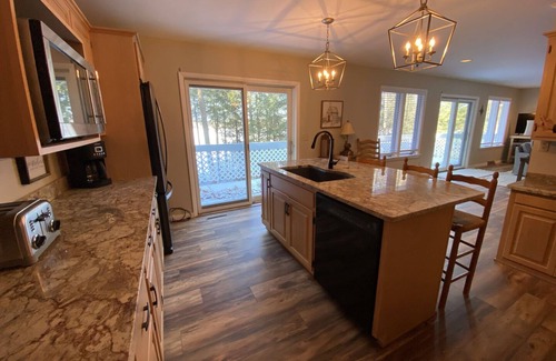 - Riverfront vacation home with a dock, wood stove, full kitchen, & firepit