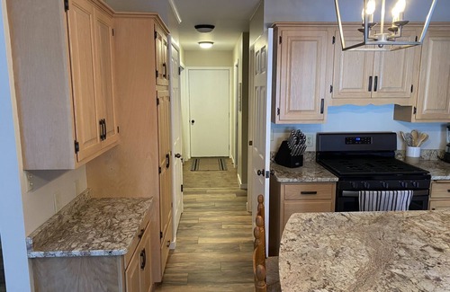 For summer fun we provide two kayaks, scooters, tubes, fishing poles, bonfire pit, charcoal grill, picnic table / chairs on deck, and dock with bumpers and tie downs for your rental boat. Driveway space for your boat trailer and vehicles.