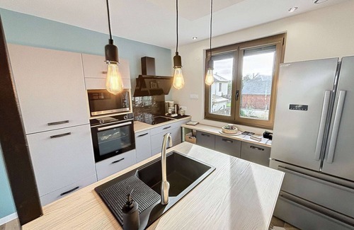 Renovated house with garden, garage, parking and free WiFi is located in Granville. Renovated house with garden, garage, parking and free WiFi provides accommodation, featuring Laundry, Parking, TV, among other amenities. This House features Laundry, Parking, TV, to make your stay a comfortable one.