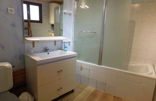 The house is quiet on the edge of the stream. It was renovated last year. There are three bedrooms, a kitchen, a dining room, a living room, a bathroom and a covered terrace overlooking and an inner courtyard. The courtyard is closed by a gate. The house is 90 m² + 15 m² covered terrace. There are two rooms with a double bed and a room with two beds or 6 beds. The living room can eventually accommodate two additional people.