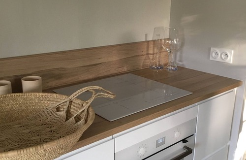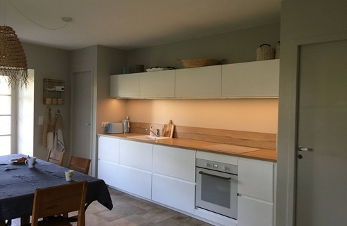 The fully equipped kitchen and back opens onto the other part of the garden.