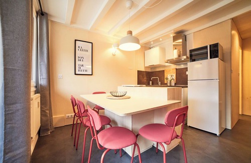 Its sunny location will delight you. While it offers ideal access to the ski slopes, the building is still shielded from the noise of the snow groomers in the evening. The apartment has been tastefully renovated by an interior designer. Perfect for a family of 4 to 6. Raclette machine provided.