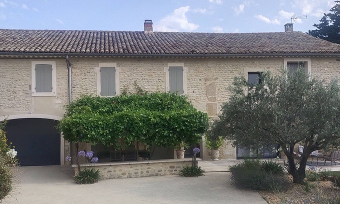 The farmhouse is located in the vineyards and olive groves, enjoying a natural and peaceful environment. You can let yourself be intoxicated by the tranquility that reigns there. By bike or on foot, courses immersed in the vineyards await the more sporty as walkers. Our property is located away from the roads. The nearby villages are 3 km to Tulette and 3 km to Visan.