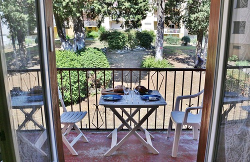Pleasant 20 m² studio apartment, rated 2 stars by Gites de France, for 2 people, with its north/west-facing balcony overlooking the 1200 m² wooded grounds (good protection from the summer heat),