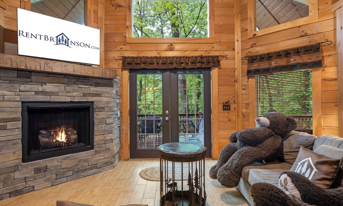 Renovated Three Bear Log Cabin, Vaulted Ceilings, Private Hot Tub! Near Big Cedar, Car Charger is located in Branson Cedars. Renovated Three Bear Log Cabin, Vaulted Ceilings, Private Hot Tub! Near Big Cedar, Car Charger provides accommodation, featuring Laundry, Air Conditioner, Balcony/Terrace, among other amenities. This Cabin features Laundry, Air Conditioner, Balcony/Terrace, to make your stay a comfortable one.