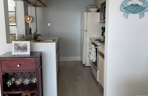 Enjoy ocean front living at its best in this recently renovated well appointed top floor 3 BR 2 BA North Ocean City condo in Covington Towers at 130th Street and the ocean . With 1 king bed, 4 full beds and a large balcony overlooking a wide beach, guests can unwind in this superb space. Enjoy amenities like WiFi, smart TVs in every bedroom, beautiful furnishings, central AC, heat, microwave, stove, oven, icemaker, washer/dryer, dedicated parking space, ground floor locker with beach chairs, and showers, bathtubs and hairdryers in both bathrooms. LVP and tile flooring makes for easy sand control. Large dining table and extra leaf make large gatherings possible, while a table on the balcony provides a smaller scenic eating space for 4. Within easy walking distance to terrific restaurants, mini-golf, Uber Bagels, Northside Park and much more. Kickback, relax, and enjoy everything Ocean City and our oceanfront condo has to offer.