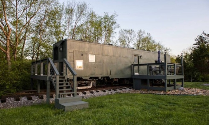 This 1943 train car offers a maximized and well designed layout for your relaxing getaway!