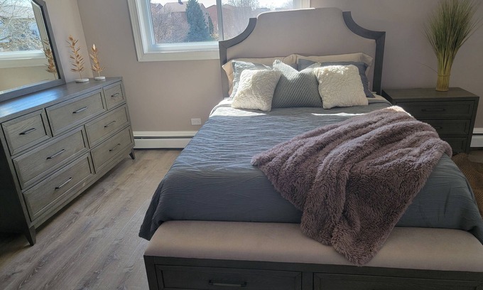 - Charming 2-Bedroom Apt. King Bed, Desk, Fast WiFi, A/C, Near Hospitals
