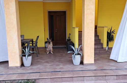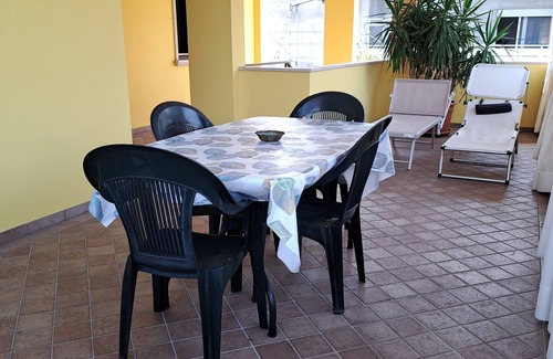 The apartment has a large double bedroom with possibility of adding a third bed and TV. Bathroom with shower, hallway, large living area with fully equipped kitchen: fridge, oven, microwave, television, gas hob. In the living area there is a sofa bed. Large covered terrace with table and chairs .I allowed small pets. It does not provide linens.