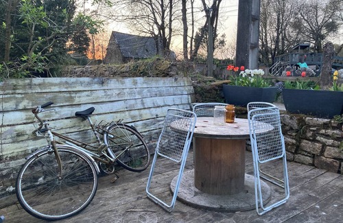 Rent cosy little house with terrace is located in Plumelec. Rent cosy little house with terrace provides accommodation, featuring Fireplace/Heating, Child Friendly, Internet, among other amenities. This House features Fireplace/Heating, Child Friendly, Internet, to make your stay a comfortable one.