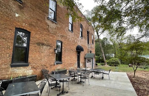 The inn features 11 cozy guest rooms, each tastefully decorated to evoke a sense of nostalgia while providing modern comforts. Couples can enjoy the spacious dining hall, accommodating up to 75 guests, and the expansive convention hall that provides ample space for wedding celebrations. The hall is equipped with state-of-the-art sound equipment, vintage lighting, and three unique entrances, including a charming saloon door that makes for a stunning bridal entrance. Your guests will appreciate the outdoor patios, scenic stream, and the unique apothecary store that showcases local artisan goods for a truly unforgettable experience.