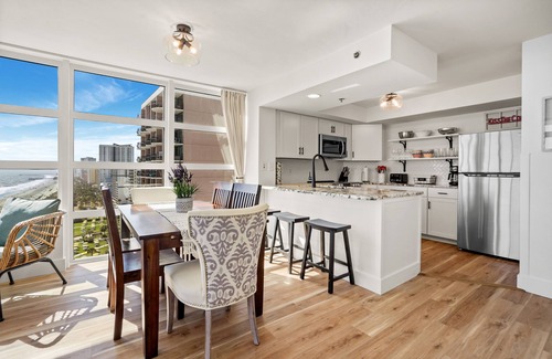 Conveniently located in Myrtle Beach, South Carolina, this property is just half a mile north of the famed Myrtle Beach Boardwalk. You'll find a delightful variety of restaurants, shops, and entertainment within walking distance, ensuring that you and your guests can easily explore the vibrant local culture. Popular attractions like Broadway at the Beach and the Myrtle Beach Convention Center are also just a short drive away, allowing you to seamlessly blend celebration with leisure during your stay. Choose Rent the Best! Oceanfront! Gorgeous remodel! 3 bedrooms 3 baths! Views! Views! for your wedding accommodation and experience a truly remarkable getaway.
