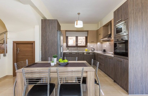 Free parking space outside the Villa • Property is well-equipped with: Fridge with freezer, Electric stove, Filter coffee machine, Frappe Machine, Kettle, Toaster, Microwave, Juice Maker, Dishwasher, Washing Machine, Iron & Ironing Board, Hair Dryer, First Aid Kit, Smoke Detector, Fire Extinguisher.