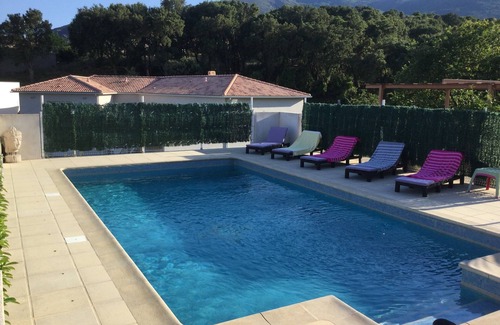 Rent beautiful below air-conditioned villa, NEW and pretty with swimming pool located halfway up Furiani in a relaxing and peaceful area