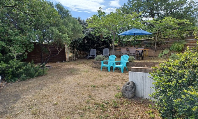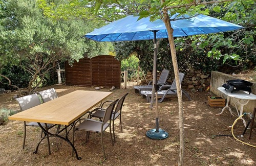 35m2 apartment on the ground floor of villa with sea view, with 1 bedroom (1 double bed and 2 bunk beds), bathroom, fitted kitchen, living room (double sofa bed) with TV, air conditioning. Private place in front of the apartment with garden furniture, table, barbecue. House surrounded by a large wooded garden, ping pong table, located between the 2 beaches of bodri (the closest 200m).
