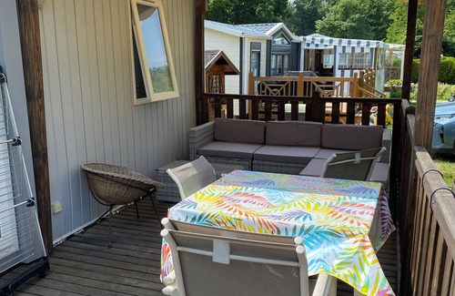 Rented 2-bedroom mobile home Heated indoor pool, tennis court, children's playground, wooded area | House in Nibelle