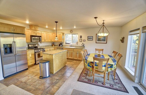 The home is 2,000 square feet, fully appointed, and features granite countertops in the kitchen. It sleeps six in three bedrooms with queen-size beds, plus a comfortable sofa bed in the loft. Enjoy the huge deck, perfect for wildlife viewing, stargazing, yoga, or simply relaxing while barbecuing with an amazing view!
