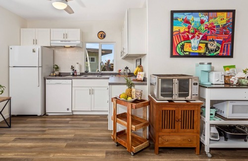Looking for just the right place to enjoy your Big Island Hawaiian Holiday? Treat yourself to a fresh approach. Your own private 1 bedroom 1 bath cottage. Newly renovated, this delightful guest cottage is tucked away behind gates at the end of a cul-de-saq. The perfect setting for those who appreciate the luxury of knowing that your comfort, privacy, and wellbeing comes first. This can only come with being a part of a private property where the ambiance of an island lifestyle home is actually a reality. During the day, head out and explore the island. Then return to the quiet comfort of Kimi's bamboo Guest House.