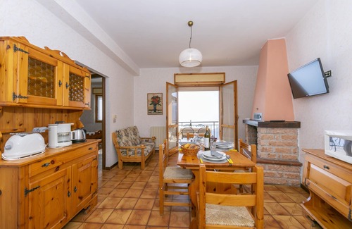 The homely interiors of the house is designed for a comfortable and pleasant stay. The holiday rental is on the first floor of a two-storey apartment. Guests can choose to dine outdoors on the balcony or indoors in the open-plan living room. There is also a dedicated sitting area with a sofa and a TV and an open kitchen which is equipped with a microwave, a drip coffee machine, a fridge and an induction hob among other appliances.