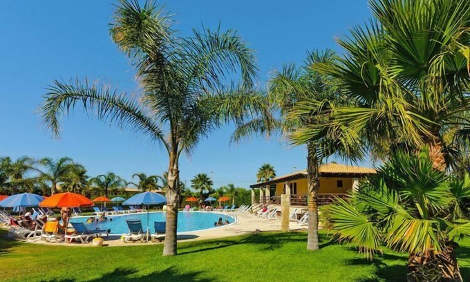 The pretty residence is just 250 m from the sea, strategically located for exploring the area. The cozy semi-detached houses are surrounded by a Mediterranean garden and palm trees, which also provide shade in the pool area. In addition to the cool water of the pool, you can also relax at the bar. Activities nearby: The residence is in the perfect starting point for discovering the destinations on the northern coast of Sicily. From here you can quickly reach the most important historical and cultural sights, such as Palermo with its Arab-Norman and Byzantine churches, Catania, Messina, Agrigento with the spectacular Valley of the Temples and the famous mosaics of Piazza Armerina. In Campofelice di Rocella there are still a few relics of the Arabs that are over 1000 years old. This is what your holiday complex offers: 10 buildings, 14 residential units, reception, bar, parking, for a fee: washing machine, tumble dryer, garden plot, communal outdoor pool (open from the end of May to September 29th), outdoor shower, loungers, parasols, children's pool (open from the end of May to the end of September, closed at lunchtime), WiFi only in public areas Fee for arrivals after 9:30 p.m.: 30€ (2023) // 10€ (2024) Note: The tourist tax fee is subject to change without notice