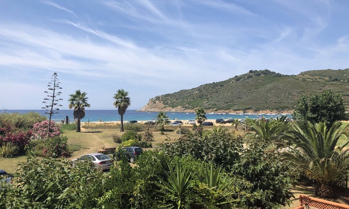 Located in one of the most popular seaside spots in the Gulf of Ajaccio, 40 meters from a beautiful white sand beach, Self-contained apartment in a lodge directly on the beach. private parking, comfortable, sleeps 4, 2 separate bedrooms, sheets extra, nearby diving club, boat rental, fishing, sea promenade, food 200m from the residence.