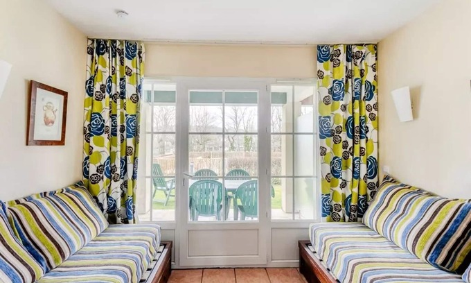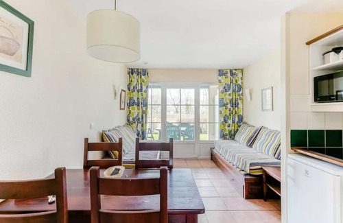 Details: Playground for children : With slide, spring game. Pets allowed : Animals are accepted for an additional fee. Find out on the spot. Maintenance kit : Maintenance kit included (1 sponge, 1 washbasin, 1 vial of multi-purpose product, 1 vial of hand dishwashing liquid product, 1 dishwasher tablet and 1 towel : can vary according to residences) Final cleaning : Extra charge. Must be completed at the end of the stay, either by the customer or by paying the service at the pre-check-in. Number of stars bowling Ping Pong : Table tennis tables accessible within the residence Swimming pool : Outdoor heated with terrace/solarium in free access. Open from 01/04 to 30/09. Near airport : Toulouse-Blagnac Airport #TLS (174.3 km) Tourist tax (surcharge) : To be paid from your customer area: https://my-compte.maeva.com. Its amount varies according to the locality. Free for children under 18. kettle Coffee maker Deposit (in euros) : 500 Heating Cooked Smoke detector Floor Toaster Garden Dishwasher Final Cleaning : Extra charge. Must be completed at the end of the stay, either by the customer or by paying for the service at the pre-check-in or on arrival Microwave oven Number of bedrooms : 1 Number of pieces : 2 Number of bathroom : 1 Cooking plate Fridge Dining Room - Seating Capacity : 5 Surface (m²) : 27 Television Terrace Dishes and cutlery View : pool