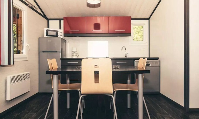 Details: Disabled access Wi-Fi access : free at reception Playground for children : yes Pets allowed : 6€ / animal / day - dogs of categories 1 and 2 prohibited Baby bath : 5€/stay Barbecue : electric barbecue rental : 5€/day Deposit (in supplement) : 315 Baby chair : €10/stay Maintenance kit : 5€/kit Laundry kit : (bed and toilet) €12/person/stay Laundromat : see on-site rates and regulations Crib : €10/stay Final cleaning : 65€ (excluding kitchen and dishes) Number of stars : 3 Car park : Only one vehicle is allowed per rental. The 2nd will have to park in a parking lot for this purpose Ping Pong Heated pool : open from end May to mid-September Near airport : Toulouse-Blagnac Airport #TLS (114.8 km) Game room : accessible in July and August with baby football and billiards Tourist tax (surcharge) : to be settled on site at current rates Television : Included kettle Coffee maker : electric Microwave oven Dishwasher Number of bedrooms : 1 Number of pieces : 2 Number of bathroom : 1 Cooking plate Fridge Surface (m²) : 35 Television Terrace